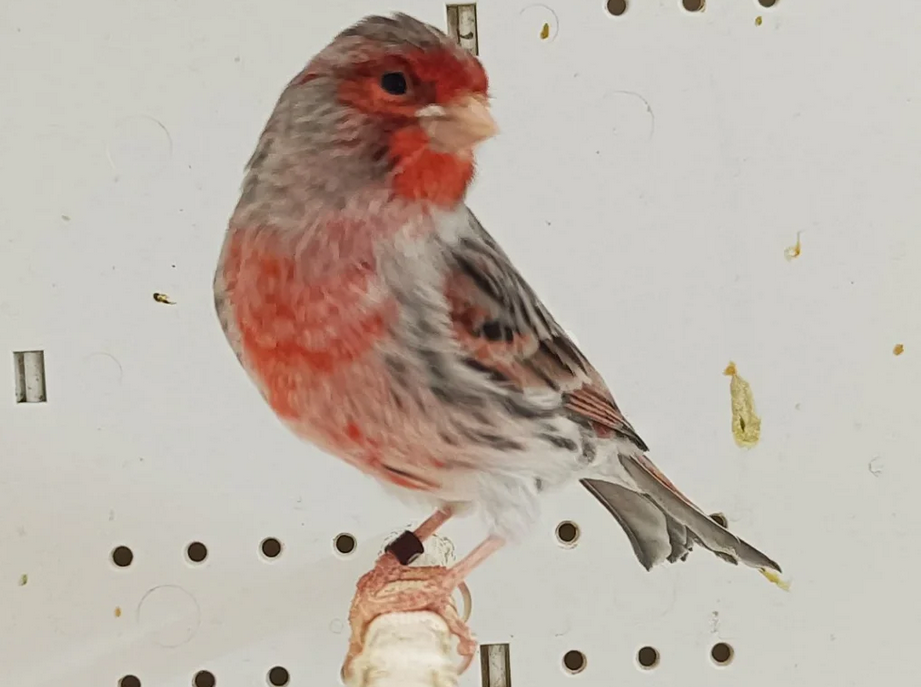 - Λιπόχρωμα (Κόκκινο): Ως Μωσαϊκό, το κόκκινο χρώμα εντοπίζεται αποκλειστικά στα σημεία επιλογής: μάσκα (στα αρσενικά), ώμους, στήθος και ουροπύγιο.